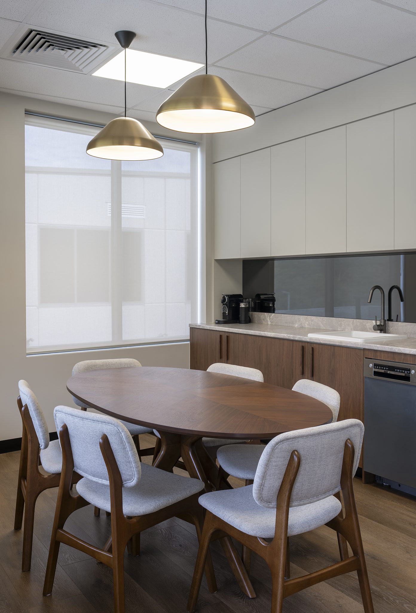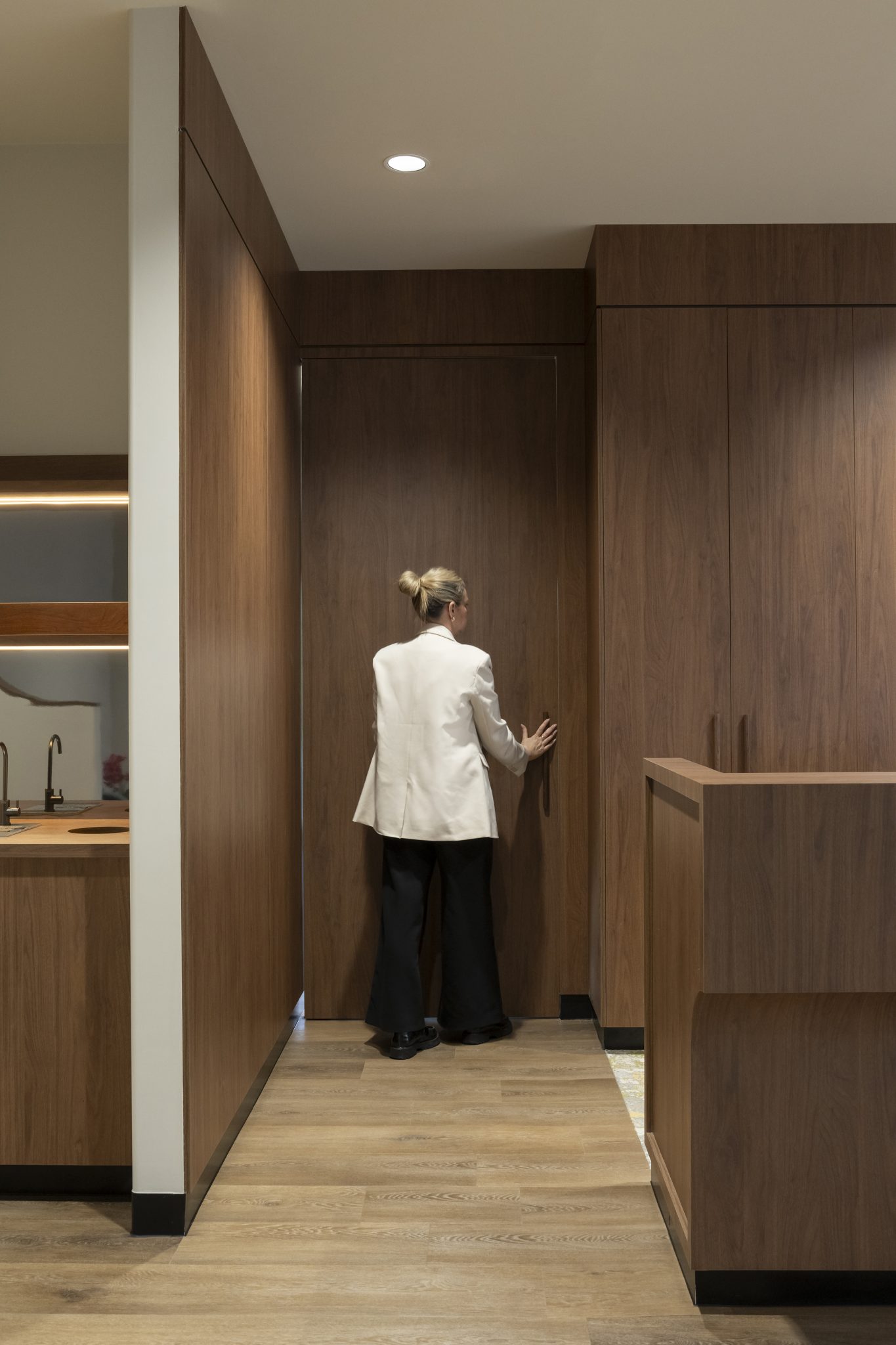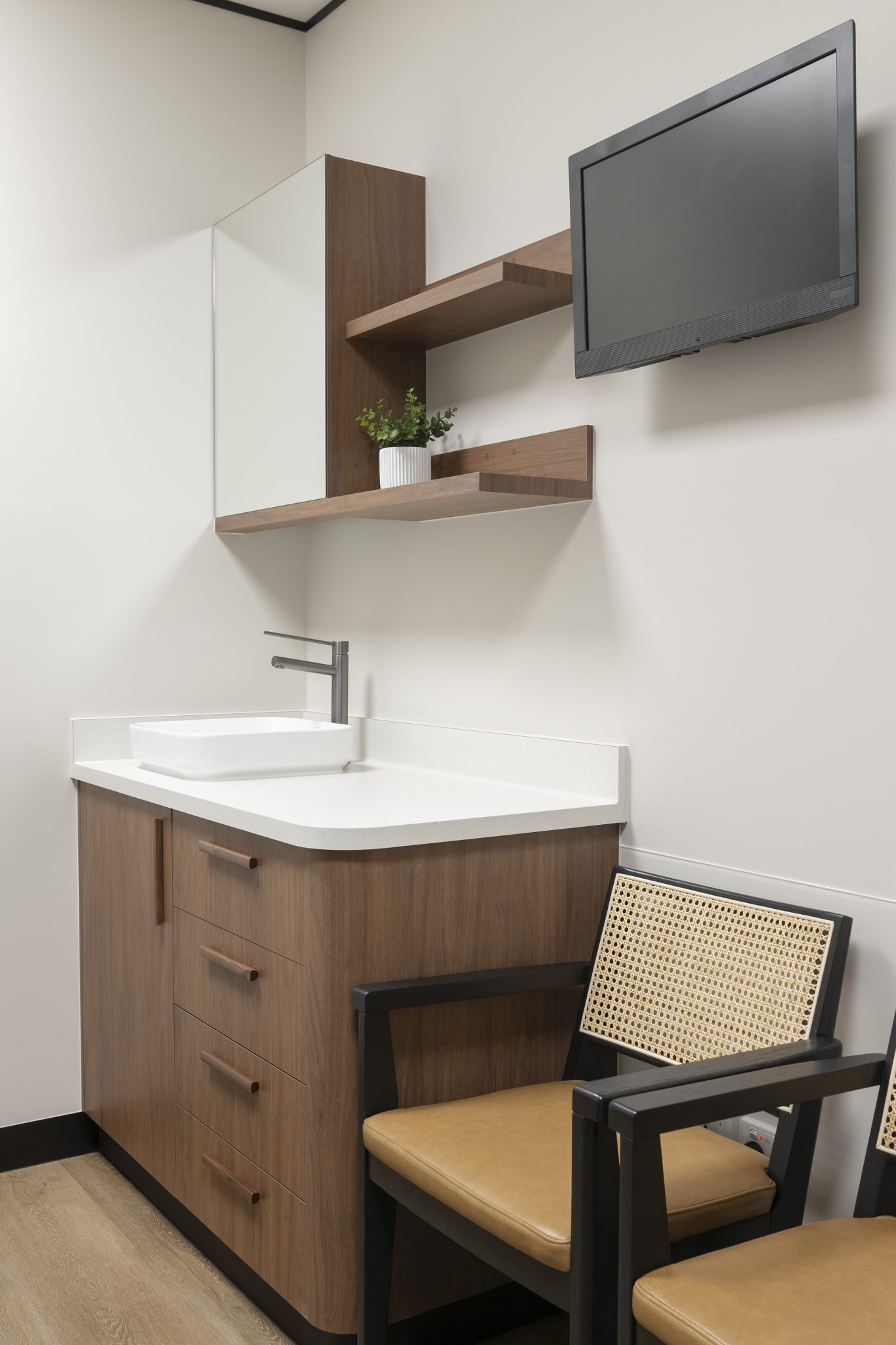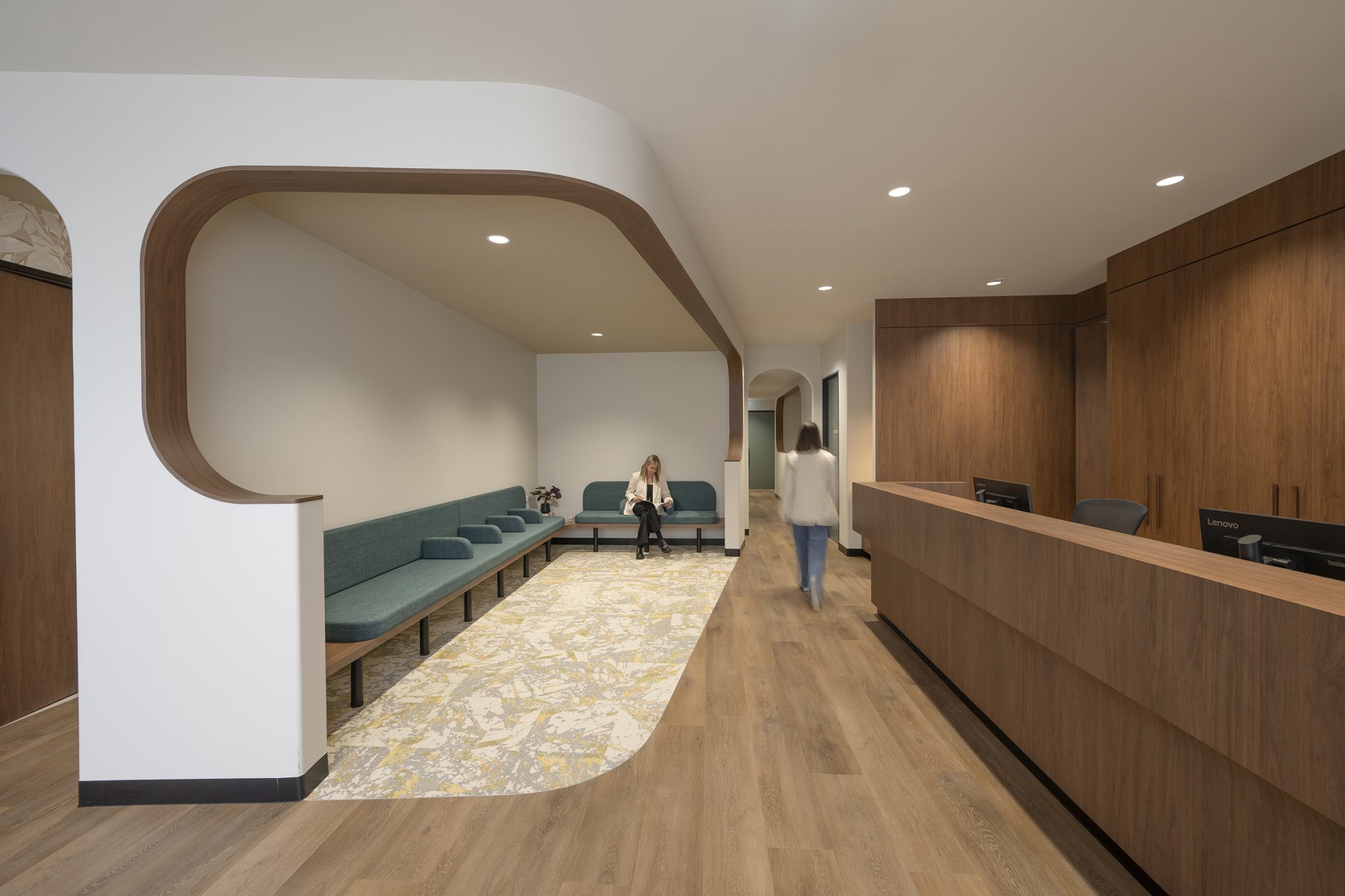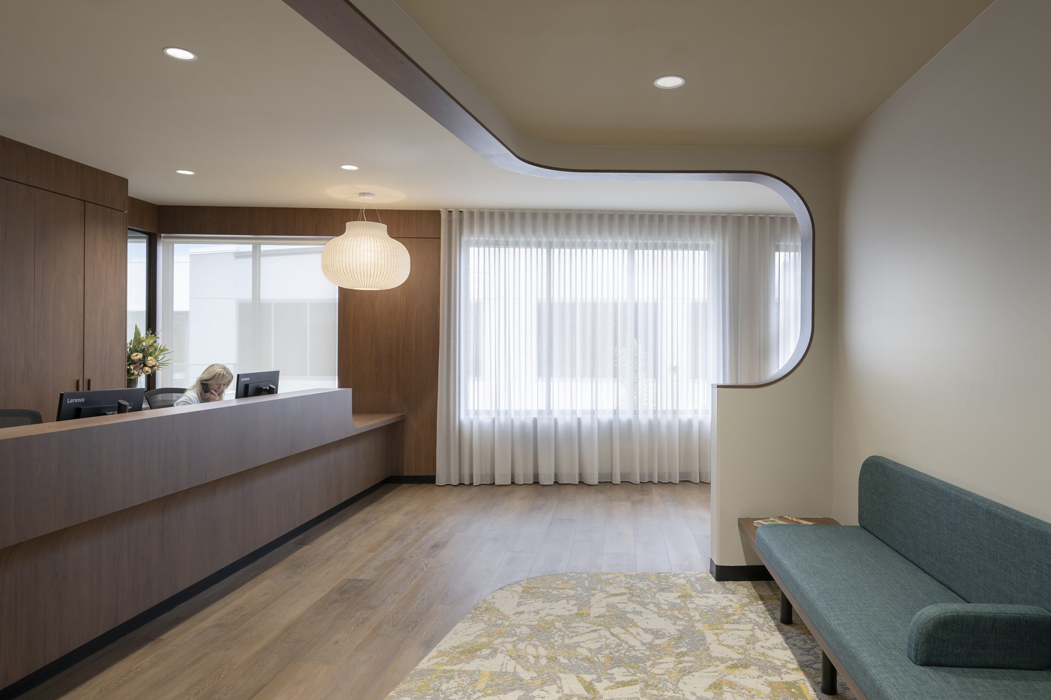 The design direction embraced understated luxury with a palette of layered neutrals, warm timber tones, and curated details. Subtle nods to mid-century modern design informed the materiality and furnishings, delivering a space that is both welcoming and timeless. The interiors were designed to support operational functionality while elevating the patient journey through texture, tone, and form.